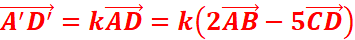 Donc, −6𝐴⃗′𝐷⃗′ + 2𝐴⃗𝐵⃗ ′ + 5𝐴′𝐶′ ⃗= ⃗0 . Par suite 𝐴′𝐷′ ⃗= 2𝐴′𝐵′ ⃗ − 5𝐶′𝐷′ ⃗