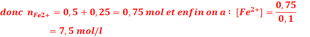4-Calcul de la concentration en ion Fe2+