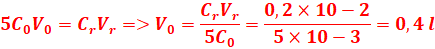 CoVO = 2CrVr => C0 = CrV0/2V0=0,1x10/2x11,2=0,045 mol/l