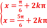 L’arc qui va de π/6 a 5π/6 comprend tous les points solution de cette inéquation.