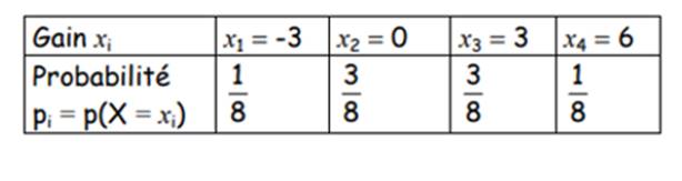 Le tableau suivant donne la loi