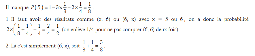 P(A)= 1 /2 et P(B)= 2/ 6 = 1/ 3