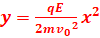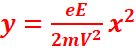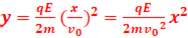L’équation cartésienne de la trajectoire entre les plaques est donnée par élimination du temps t entre les équations paramétriques (1) et (2)