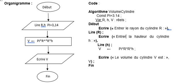 Ecrire (« Le volume du cylindre V est : », V) ;