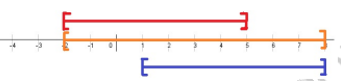 3. IUJ=[-2 ;8] en orange et I⋂J=[1 ;5] en vert