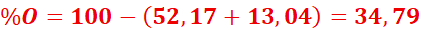 %O=100-(52,2+13) =34,8%