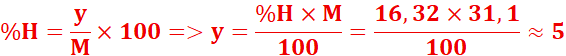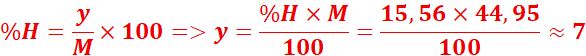 2. H : 0,090 / 18 = 0,005 mol × 2 = 0,010 mol