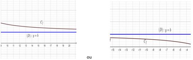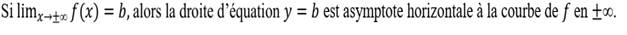 Lorsque la fonction f(x) tend vers un nombre b quand x tend vers l’infini, la droite d’équation y=b est asymptote horizontale.