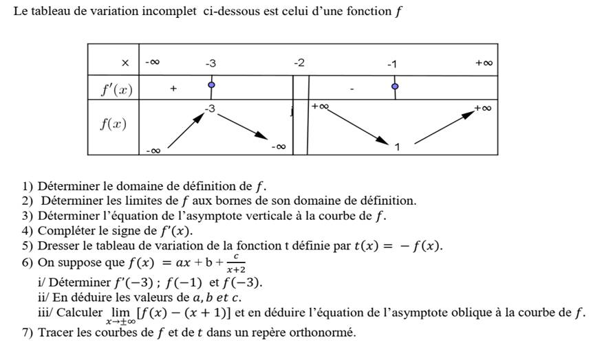 6-Montrer que la droite (D) d’équation y=2 est une asymptote.