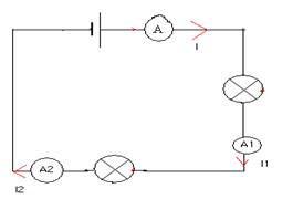 valeurs indiquées par l’ampèremètre montrent que I = I1 = I2