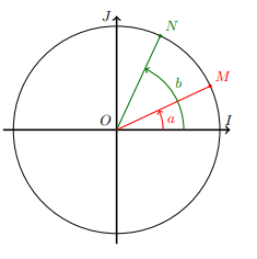 Soit M et N deux points d’un cercle trigonométrique. M est l’image du réel α, N est l’image du réel b.