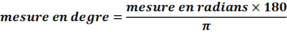 La mesure d’un angle orienté s’exprime en radians(rad) ou en degré (°). Un tour complet correspond à 2π radians.