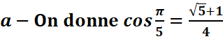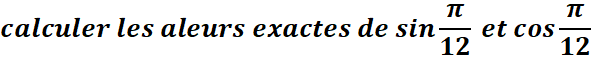 Puisque vous connaissez cos π/4 et cos π/3, déterminez une valeur exacte de cos π/12 , puis de cos π/24.