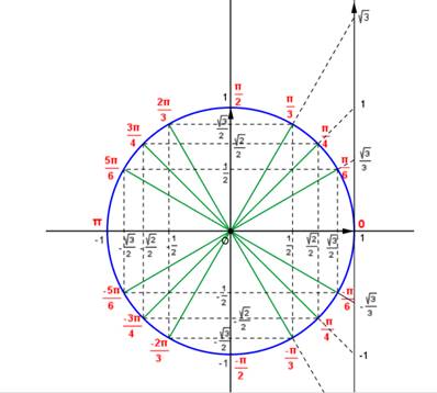 A partir du cercle trigonométrique ci-dessus: