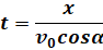 L’équation horaire x = (ν0 cosα)t conduit à :
