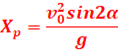 La portée est l’abscisse xp du point P, dont l’ordonnée yp est nulle. C’est le point du sol sur lequel arrive le projectile après sa chute.