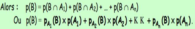 Soit p une probabilité sur l’univers Ω , A et B deux événements de Ω. Alors:
