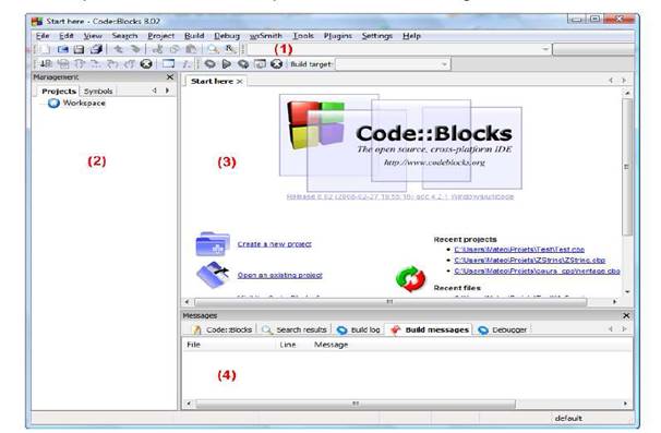 codeblocks‐20.03mingw-setup.exe ). Certaines versions ne contiennent pas ce fichier, ce qui cause beaucoup de désagréments. L'installation est très simple et rapide. Laissez toutes les options par défaut et lancez le programme. A la fin de l’installation, la fenêtre de code::blocks s’ouvre: