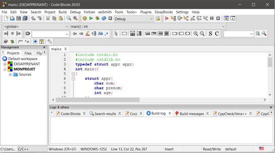 Mais on utilise généralement en C comme outil de programmation, un programme« trois-en-un» qui combine éditeur de texte, compilateur et débogueur: c’est un IDE.