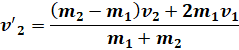 Lors du choc élastique de deux corps on a les données suivantes : m1 = 20 g ; v1 = 160 m/s ; m2 = 30 g. Le deuxième corps est au repos avant le choc, calculons les vitesses finales v’1 et v’2 des 2 corps en supposant quelles sont colinéaires.