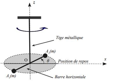 barre horizontale et les deux masses m par rapport à l'axe Oz. Le référentiel
