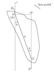 fixe ne passant pas par son centre d’inertie G. On note Oz l’axe de rotation