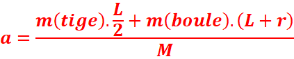 m’ est la masse totale de la tige + particules m’=M+m+m=2+0,1+0,1=2,2kg
