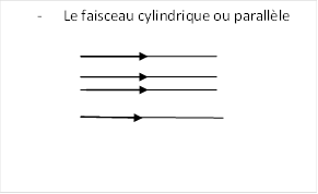 Un faisceau lumineux est un ensemble de rayons lumineux, on distingue trois types de faisceau lumineux :