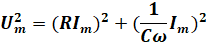 - La tension aux bornes du condensateur C est déphasée de –π/2 avec le courant (retard de T/4) et Uc = I/Cω.