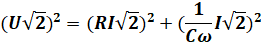 Cette tension se décompose en deux tensions partielles UR et Uc. La résistance et le condensateur sont en série ; ils sont donc traversés par le même courant d'intensité efficace I (indiqué sur le schéma).
