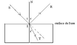 subit la lumière à la traversée de la surface de séparation entre deux milieux