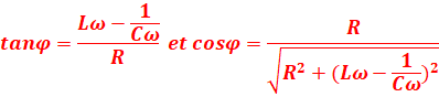 Deux relations permettent d’établir le déphasage φ de la tension par rapport au courant :