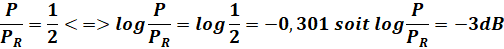 à -3dB correspond donc aux