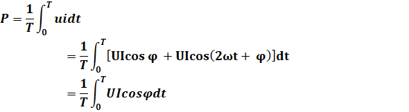 P=ui=2UI cosωt cos(ωt+ φ)=UIcos φ +UIcos(2ωt+ φ) // cosacosb=1/2[cos(a+b) +cos(a-b)]