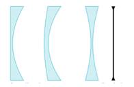 De gauche à droite : Plan concave, Ménisque divergent, Biconcave, symbole de la lentille divergente, Biconvexe, Plan convexe, Ménisque convergent, symbole de la lentille convergente.