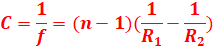 Si l’on note R1 ; R2 les rayons de courbure des deux dioptres, C1; C2 leurs centres respectifs et e l’épaisseur de la lentille, alors