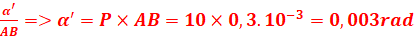 β = P.AB = 550 x 10-4 = 0,055 rad