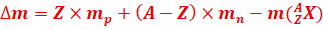 Δm = (1,0087+4,0015−2,0160−3,0247).u
