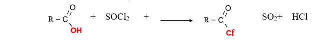 R – COCl + NH3⟶ R – CO – NH2 + HCl