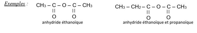 anhydride d’acide résulte de l’élimination d’une molécule d’eau entre deux