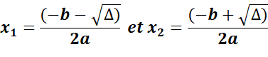 appelle discriminant du polynôme p, le réel ∆ défini par Δ=b2-4ac