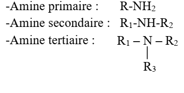 que l’atome d’azote porte un,deux ou trois groupesakyles ouatyles. Elles sont