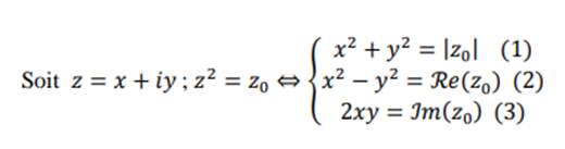 Soit z = x + iy, alors :