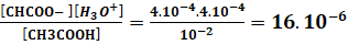 On donne : Ca=10-2 mol.l-1, [CH3COO-] = 4.10-4 et [H3O+]
