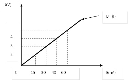 En déplaçant le curseur du rhéostat, l’intensité du courant varie dans le circuit ainsi que la tension aux bornes du résistor. On obtient expérimentalement les résultats :