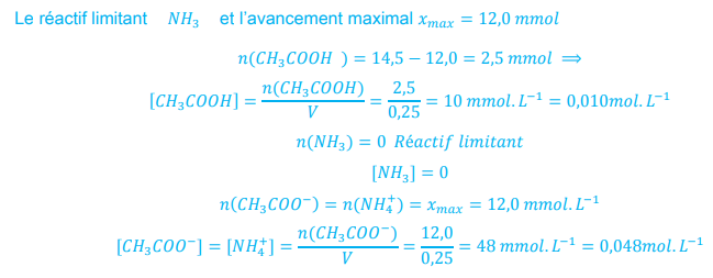 -0,025 mol d’acide acétique réagiront avec 0,025 mol de NaOH