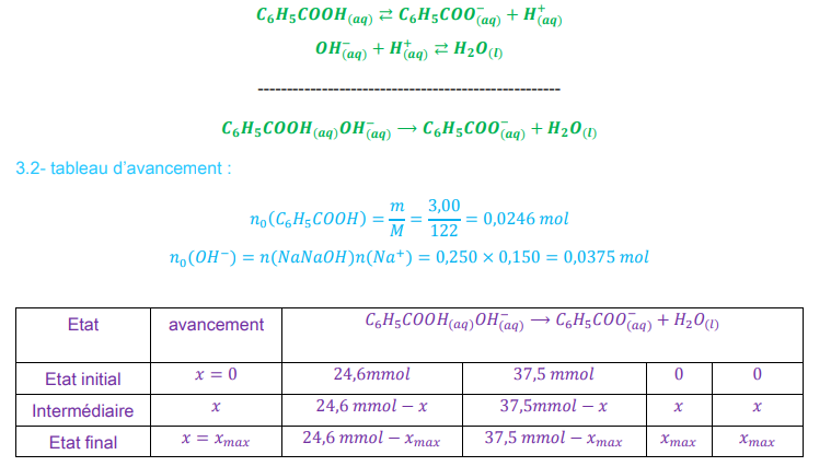 2- Le couple 𝑎𝑐𝑖𝑑𝑒⁄𝑏𝑎𝑠𝑒 de l’acide benzoïque : 𝐶6𝐻5𝐶𝑂𝑂𝐻 /𝐶6𝐻5𝐶𝑂𝑂 −
