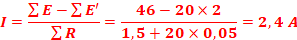 Batterie: U=E’ +r.I2 =>I2=(-E’+U)/r’=(-40+41,5)/1=1,5 A