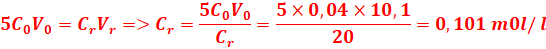 CoVO = 2CrVr => C0 = CrV0/2V0=0,1x10/2x11,2=0,045 mol/l