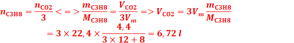 Masse molaire : propane : 3x12+8=44 g/mol ;
